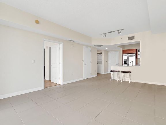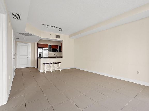 This beautiful and very bright 1 bedroom/1 bathroom condo is located in the prestigious building City Palms. You're just a short walk to City Place, Clematis, Rosemary Square, and a short bike ride to the beach! One of the unique features of this condo is the den that can be used as a second bedroom or office, giving you additional space and versatility. The condo has all the modern touches you could want - brand new porcelain flooring in the bedroom, bathroom, and den, quartz countertops and Italian cabinetry, and a brand new AC. And don't forget the one parking space included with the unit! City Palms has all the amenities you could want, including a 24 hour manned lobby, swimming pool, fitness center, sauna, and valet parking. This condo is perfect for anyone looking for a luxurious and convenient home in the heart of the city. Don't miss this amazing opportunity!
