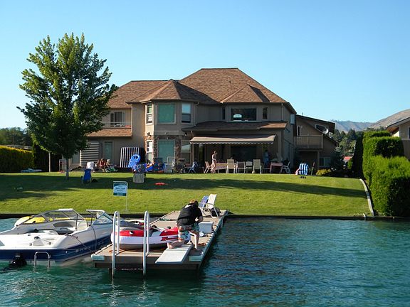 Once in a lifetime opportunity...4+ bedroom 90' of Lake Chelan waterfront! All the amenities you could wish for! Perfect entertaining kitchen, patio with built in BBQ, spacious lawn, TREK dock w/boat lift AND watercraft lift. 2 heat pumps, heating/cooling systems split for both levels, 4 car garage + 5th bay has accessory dwelling above. Huge bedroom, full bath, kitchen deck. Garage it extra large and has shop area. RV parking and hook up. See attached document for more amenities.