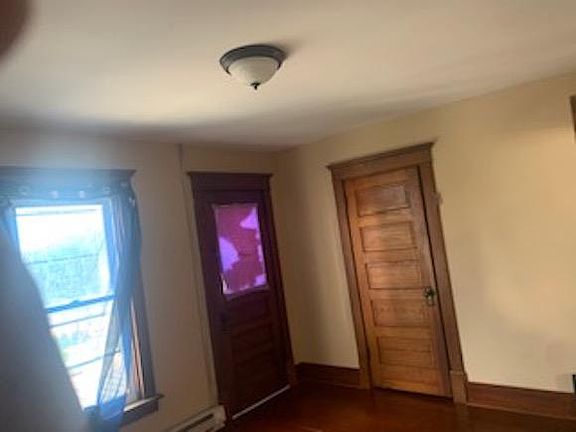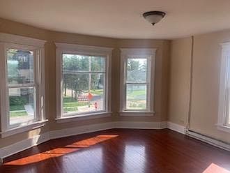 Upstairs of Duplex, 3 plus bedroom, 1 bath, eat in kitchen, beautifully finished hardwood flooring with some built ins. Has 4 off street parking spots. Close to campus and downtown. Electrical Heat and the average electric bill for the last 12 months (July) was $137.24. Responsible for mowing lawn and snow removal with tenant in the lower level. Lease can be set for 9 months and pets can be discussed knowing there is rent and security deposit for them also. There's off street parking for 4 and a street parking permit.