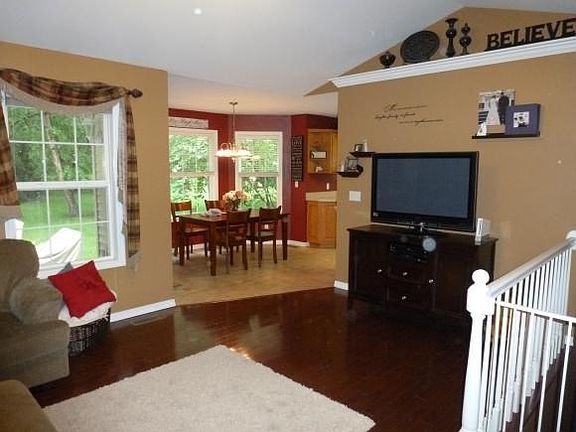 Affordable Forsyth home in popular Eagle Ridge Estates. Open Concept. Beautifully decorated 3 BDR, 3 Bath Ranch has hardwood flooring in living room & hall. Master Bedroom fits a king-size bed comfortably & has walk-in closet. Lower level includes Family Room, 3/4 bath & large storage space. Conveniently located near shopping, interstate, village walking trail & neighborhood park. Private back yard with new extended patio backs up to trees & land owned by Village of Forsyth. Water Heater in 2009. Seller is related to listing agent.