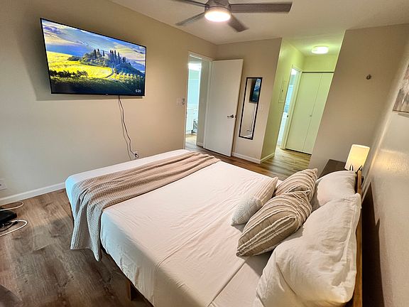 Fully Furnished Just bring your suitcase! Enjoy 2 queen beds, linens, a cozy couch, 65" Smart TV, and a fully stocked kitchen.