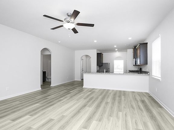 Style meets functionality in the 3-bedroom, 2-bath Clover plan from LGI Living. From the moment you step through the front door, the open and spacious layout of this single-story home unfolds and welcomes you to relax and unwind. The private dining room sets the stage for engaging conversation over meals, while the open kitchen and family room are perfect for hosting larger groups. The oversized covered back patio extends the entertaining space outdoors, giving you the perfect space for soaking in summer nights. The Clover is outfitted with an array of designer upgrades, including a full suite of energy-efficient, stainless steel kitchen appliances, granite countertops, breakfast bar, stunning wood cabinetry with crown molding and recessed LED lighting. The large master bedroom in the Clover provides a restful retreat with a large soaker tub, walk-in shower, and expansive walk-in closet. Other incredible features of the Clover include luxury vinyl plank flooring that runs throughout the home, professional front yard landscaping, and an attached two-car garage. In addition, this gorgeous home features a fully fenced back yard, a washer and dryer included, and a covered front entryway. Freeman Ranch by LGI Living provides residents with a quiet, relaxing refuge just minutes away from the loads of fun and all of life's necessities. Located in north Katy, minutes from I-10 and the Grand Parkway, Freeman Ranch positions residents for an ideal lifestyle in a safe and quiet neighborhood within reach of every convenience. This commuter-friendly location provides easy access to some of Houston's top employers along the I-10 Energy Corridor, including Shell and ConocoPhillips. Residents have their choice of nearby stores for groceries and other staples at Walmart Supercenter, H-E-B, Kroger or Costco, to name a few. Retail bargain hunters will adore the proximity of Freeman Ranch to Katy Mills, Houston Premium Outlets and Traders Village. Katy is one of the fastest-growing areas around Houston, and the options for entertainment on Houston's west side are endless. Adventure seekers of all ages and interests will find a huge selection of activities just a short drive from Freeman Ranch such as Typhoon Texas Waterpark, Mary Jo Peckham Park, Houston Funplex, Bear Creek Roller Rink or the Golf Club at Cinco Ranch. Fun can also be found right outside your door in Freeman Ranch, where a 2-acre park offers children's playgrounds, a splash pad, a large party pavilion and a huge open lawn space where children and pets alike can run and play.