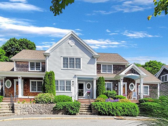 Here's an opportunity to own a townhouse condominium in the heart of downtown Falmouth! Built in 2009, this gently lived in 2 bedroom, 2 1/2 bath condo has been meticulously maintained by the original owners. The unit offers so much! Central A/C, hardwood floors, granite countertops, gas fireplace with built-ins, stackable washer/dryer combo, custom window shutters for privacy, and 2 dedicated parking spots. The unfinished basement is spotless and has enough ceiling height to finish. The deck off of the dining area has a motorized awning and the patio has custom mahogany wood covers for the gas meter and air conditioning compressors, which can be used as extra seating or a buffet for outdoor parties. A path takes you to Nye's pond which offers a wonderful opportunity to kayak, canoe, and fish. This is a spectacular condominium set on private, lush, and well-maintained grounds. Furniture etc. can be included in sale.