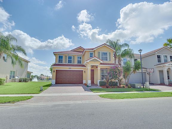 Immaculate 5 bedroom 3 bath lake front home in the highly desired Palm Beach Plantation. One of the largest models in this neighborhood with a total of 3467 sqft! As you enter, you'll be impressed with the 20ft vaulted ceilings, rich hard wood floors and a great open floor plan. This home is not only spacious, but extremely safe. Feel at ease during hurricane season with full impact windows and doors on the first floor (extra security) and complete accordion shutters upstairs. There is generator that powers the entire home along with full air conditioning that will turn on automatically when power is lost. The water heater is brand new and the roof was recently sealed and reinforced with epoxy for extra hurricane protection.