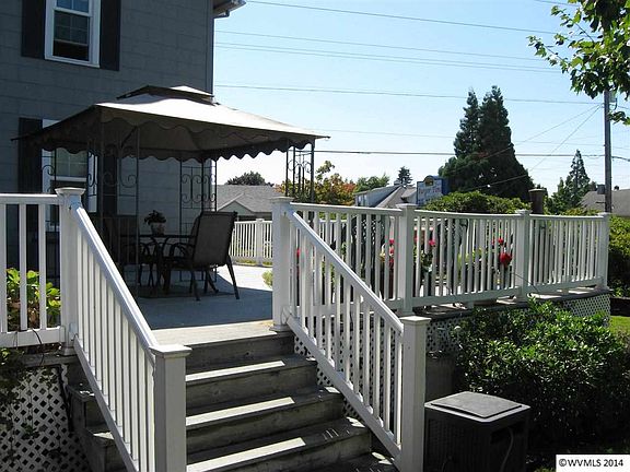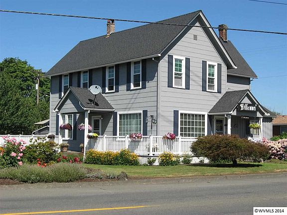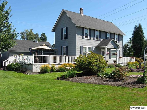 Classic old style farm house with some charm on a corner lot in the heart of Mt. Angel. Big wrap around deck with large fenced backyard with a storage shed. Detached 1 car garage with workshop and a root cellar/fruit room in the same building,18'x26' Large carport next to the garage. Master on main with four bedrooms upstairs w/half bath. Kitchen has tile & stainless steel counter tops & sink. Very well maintained w/beautiful yard.