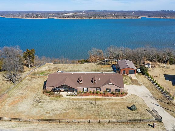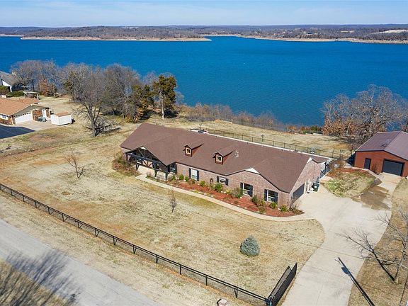Stunning panoramic lake views with this waterfront custom built 3,610 sf. home on 1.18 acre lot. Quality & detail throughout. Large master suite w/fireplace, spacious, open living area, office, gameroom, beautiful chef's kitchen. Huge inground, gunite pool & covered patio, hot tub, sauna. Two-car attached garage + oversized one-car detached garage for all your toys. Only 30 minutes to downtown Tulsa. One year home service agreement offered by seller.