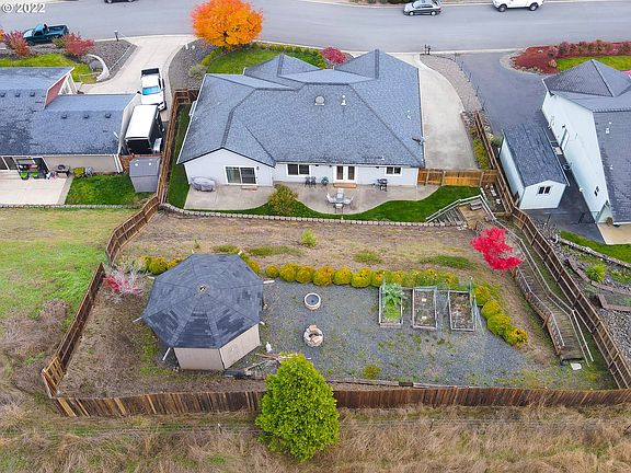 Beautiful 1-story, open concept home with vaulted ceilings in nice neighborhood. Heated tile floors in kitchen and dining room. Lighting under kitchen cabinets. Smart Thermostat and Ring security system. Large Master suite with walk in closet and double sinks. French doors lead to back patio where there are hot tub hook ups and gas connection for BBQ. Stairs lead to Terraced back yard featuring a gazebo, firepit and spectacular views of the valley. RV parking/hookups. 220 power in garage.