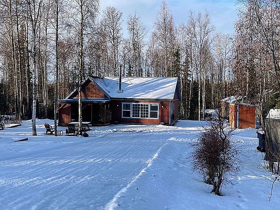 2-bedroom, 2-bathrooms, with a spiral staircase to a private loft room. ~ Natural gas is in neighborhood ~ Cozy, efficient, well-kept and beautiful home on 0.55 acres near Big Lake, Alaska. Great starter home for a couple, small family, retirement, or vacation. •Freshly painted interior. •The wall between the vaulted 2 bedrooms is designed to be removed to make into one large bedroom. •Bath 1 has a fiberglass tub/shower enclosure with tile floor. •Bath 2 has a custom tile corner shower with clear glass surround and tile floor. •Kitchen has a new refrigerator, convection oven and microwave. •Laminate floors throughout the main floor with solid pine doors and trim throughout. •Open living room with vaulted ceilings and large windows assembly. •Wood stove with slate tile hearth and wood storage area with mantle. •Office nook with upper and lower cabinets in living room. •2 toyo stoves, electric baseboard bathroom heat, air circulation systems, and woodstove. •Well insulated R70 blown-fiberglass attic insulation and R24 spray foam walls and rims. • WIFI HD cameras with on/off switches. Free to monitor from phone and $120/year for cloud recording storage. •Battery backups for cameras, exterior lights, and living room lights during power outage. •Dry and clean accessible crawl spaces with sealed 6 mil vapor barrier and carpet remnants. •Maintained 2-bedroom septic without issues. 140’ private well producing plenty of clear water. •Gravel topper on driveway with large RV parking pad and additional parking areas. •RV hookups (septic drain, summertime water connection, and 30A service. •6x8 shed with enclosed soffits and matching paint. •8x8 wood “shed” on a pressure treated platform. 1.5 cords of dry-split-wood plus 2 cords of log-wood included! •4 garden beds, strawberries, raspberries, lilacs, mock orange, and a Japanese lilac tree *agreement applies. •Beautiful back yard lawn for family play time with pool or trampoline pad and 2 children’s swings. Original structure (left half) was built in 2006 and the right half (addition) was built in 2015. At the time of the addition construction, there were several upgrades to the main structure including… •Metal roof and strapping was removed. •CDX plywood installed. •Architectural asphalt shingles with metal drip edge installed with ice and water shield in critical areas. •Excavation for good drainage away from the structure and nice lawn areas. •Blueskin waterproofing barrier applied to exterior of foundation. •All soffits enclosed. •Exterior walls stained. •Exterior trim painted. •Added/enlarged windows. •New main entry door. •Clear finished solid wood doors and trim installed. •Bath 1 remodeled.