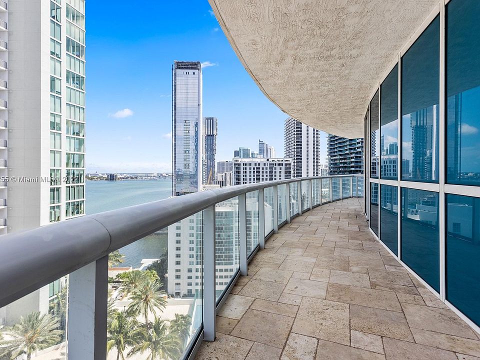 Breathtaking views from every room in the best boutique building in Edgewater. This stunning 3 bed 2 bath unit boasts floor to ceiling windows that create an open and bright ambiance, an incredible spacious terrace that wraps around the entire residence, a modern open style living room and kitchen with granite countertops, built-in cabinetry, and stainless-steel appliances. The primary suite features in-suite bathroom, a custom-built walk-in closet, and automated window shades. Newly updated amenities include a fitness center, business center, social room, heated pool, jacuzzi, steam room, sauna and 24-hour security. 2 assigned parking spaces.