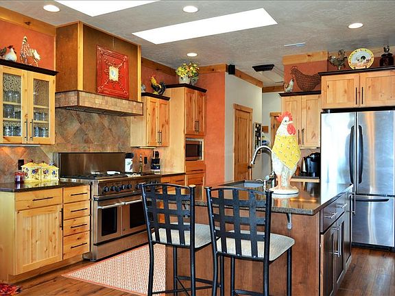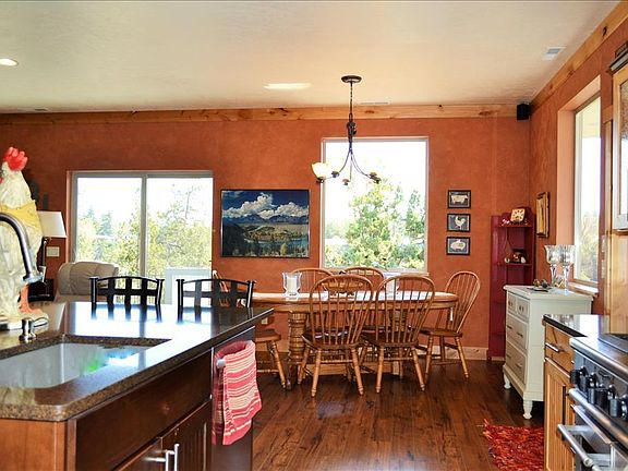 Custom home with private access to Dry Canyon Park (Frisbee golf, dog park & miles of trails). Built with SIP panels (insulation/sound block/fire-earthquake-insect resistant). Chainlink and cedar fencing, artificial turf, handicap friendly with 36" doorways. Large 24x24' garage (sink/cabinet); 20x28' garage/shop (8' door/heated/windows); 10x14' enclosed heated breezeway (office/studio/4th bedroom). Large paver patio with Pergola, gas fireplace, gas BBQ on deck, water feature, planters, hot tub pad & fenced for pets. Knotty Alder doors, baseboard, kitchen & bath cabinets, quartz counters, stainless appliances, 48" Chef's range (6 burners/grill). Hardwired surround sound, custom barn wood fireplace & accents. Sun tunnels (laundry/guest bath/master closet/pantry). Skylights in kitchen & master bedroom.