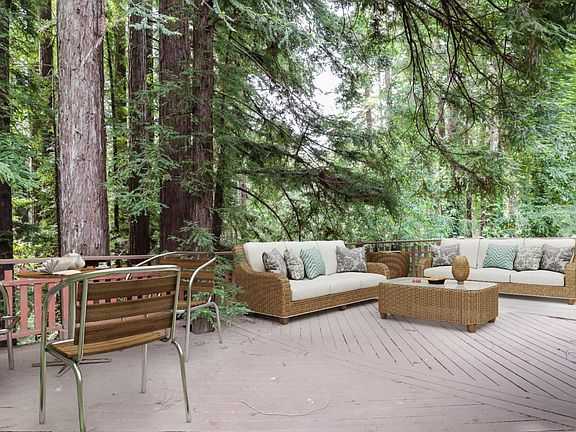Serene views surround this private custom-built Mountain Retreat. Perfectly situated on an elevated 2.032 acre parcel, you'll find yourself under an expanse of clear sky set amidst redwood & oak trees. 1 mile from downtown Boulder Creek & ~10 miles to Hwy 17. Spacious light-filled galley kitchen overlooks the garden & includes butcher block counters, cook top range, built-in oven, stainless sink, walk-in pantry & skylight. The expansive living room includes soaring open beam vaulted ceilings & is exquisitely finished with premium Red Cedar tongue & groove paneling throughout. Multiple skylights provide excellent natural light flow. Freestanding wood-burning stove, ceiling fans, new carpet & closet nook. Two spacious light-filled guest bedrooms with vaulted open-beam ceilings, completely finished with cedar paneling, ceiling fans, & new carpet. The lower level incorporates a Master suite, guest rm, spacious laundry rm +washbasin, storage room & direct access to exterior decking
