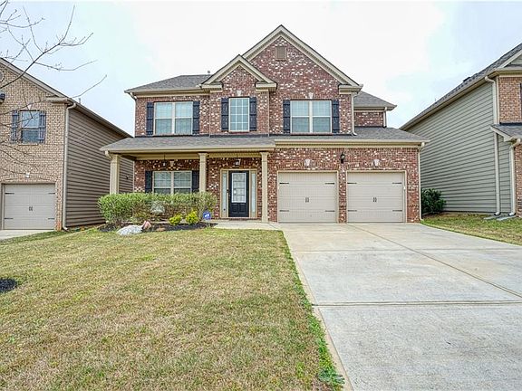 Gorgeous brick-front 5 bedroom, 3 full bathroom home with very open floorplan! Large foyer area, spacious eat-in kitchen with island, expresso cabinets, granite countertops and stainless steel appliances. Family room and cozy living room with recessed lights throughout. Huge Master Bedroom with sitting area, his and hers spacious separate walk-in closets with separate his and her sinks. Covered front porch and back patio for grilling. 2-car garage with garage openers already installed. 6 minutes from I-85. 8 -10 minutes from many restaurants, gas stations and shopping. 20 minutes from Newnan, Fayetteville shopping. 17 minutes from the airport. Golf course community with clubhouse and 2 pools! A must see.
