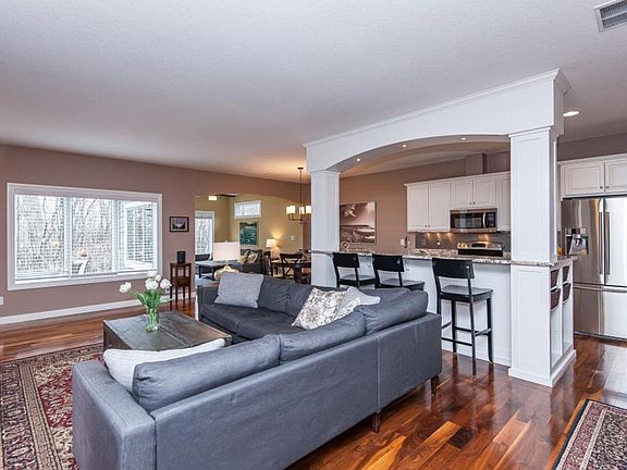 Find your wooded hilltop views in this trendy and stylish townhome featuring a white kitchen, granite tops, stainless appliances and gleaming dark hardwood flooring throughout. The new version of this now runs over 440K so the value here is unbeatable! Gorgeous great room with gas fireplace and a wall of built-ins plus a cozy sunroom with surrounding windows on the back . Private patio with nature all around and so much privacy. Three bedrooms on the upper level along with separate laundry facilities in its own room. Private master bath has a tiled walk-in shower, heated floors and double sinks plus a walk-in closet. Don't miss the walk up attic in garage that makes a perfect storage room. A small quiet circle of townhomes with towering oaks. Close to the center of Rochester, Mayo Campus, trails and shopping.