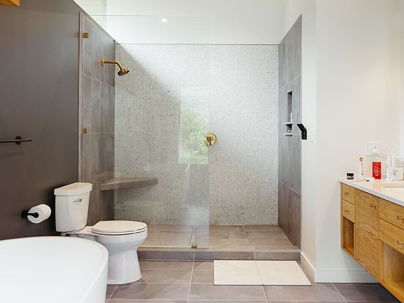 Primary bedroom has a King sized adjustable bed and large luxury bathroom with huge walk-in shower and soaking tub and two sinks. Two more bedrooms share the full bath and a huge basement with large windows has its own full bath. The kitchen is large and bright with chef's dream range and oven. This is the most comfortable, bright space you will find within walking distance of Normaltown and one block from new med school.