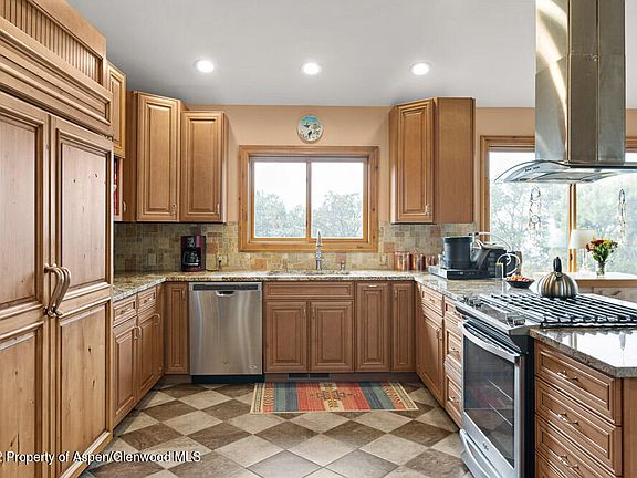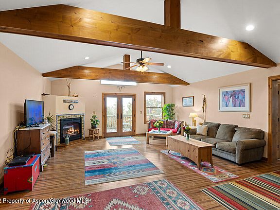 This custom-built home boasts one level living (main floor primary), a walk-out lower level with two bedrooms, with its own entrance that would be an ideal artists studio, mother-in-law unit, or home office. Pinion Point is near the entrance of the subdivision, so minutes away from hwy 82. Take in the views off the deck on the upper level. Lots of extras with walk in pantries, laundry room with sink, Jacuzzi tub, bamboo floors, Subzero fridge, hooded stove, and gas fireplace. Open concept with beautiful wood beams on the ceiling.