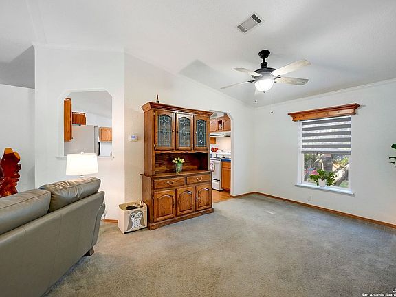 Welcome to this serene 1,920 sq ft, 3-bedroom, 2-bath home on a peaceful half-acre lot, built in 1999 & surrounded by majestic oak trees. Recently updated with fresh interior & exterior paint, this very well maintained home offers both charm & move-in-ready comfort. Enjoy regular visits from whitetail & axis deer, along with birds & foxes-nature lovers will feel right at home. The spacious kitchen is a true highlight, featuring a large island & abundant cabinet space, ideal for cooking, hosting & gathering. Relax on the covered front porch or spacious back deck & pick fresh fruit from your very own peach tree (seasonal). The home also includes a separate primary suite w/a walk-in closet, dual sinks & a private bathroom, plus a versatile flex room perfect for a workout space or home office. A metal drive-thru garage & low electric bills add to the home's appeal. All this in a fantastic location near recreational areas; Canyon Lake, Blanco River, wineries plus easy commute to Fredericksburg, Austin, San Antonio, Canyon Lake & San Marcos.