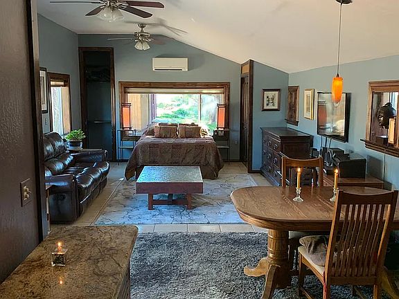 Cozy and very private one bedroom/one full bath 635 sq. ft. studio home. Includes all utilities and has a washer and dryer. This house is alone on 2 1/2 acres with beautiful red rock views. This newly remodeled home has stainless appliances, custom wood work, granite counter tops and a reverse osmosis system. Electric AC, heat and dryer. Gas stove and oven. There is an outdoor seating area with a gas BBQ grill. It can be rented partially furnished or empty. Avoid the Sedona traffic, it's on the west side of West Sedona. Just a 5 minute drive to town. Available April 25. Flexibility with pets. $2000/mo. Utilities included. No smoking By appointment only Includes all utilities. One year lease required. One small dog.