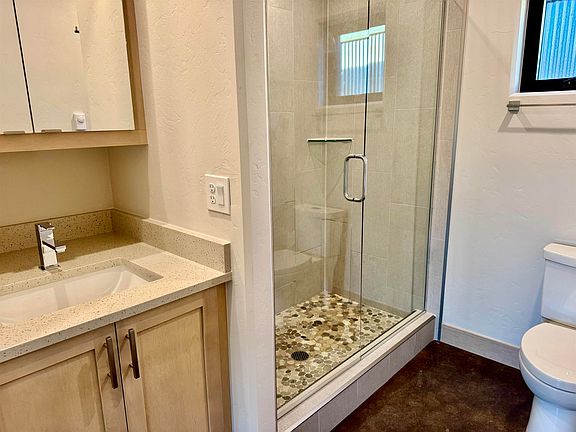 - Main Level Primary, Solid Surface Counters, Vaulted Ceiling(s), Walk-In Shower, Programmable Thermostat