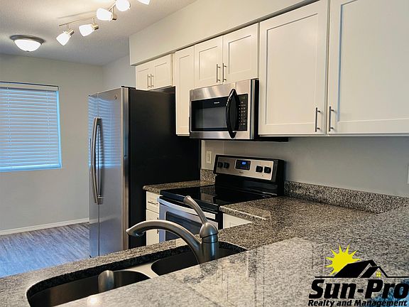Welcome to this spacious 2 bedroom and 1.5 bathroom townhouse located in Riverwood Village! Features include new wood-look flooring, upgraded cabinetry throughout with granite counter tops, updated light fixtures, and gourmet appliances. Washer and dryer included. Large sliding glass door opens to the private fenced patio area and outdoor storage. Community pool and fitness room accessible to all tenants. Assigned parking spaces. Pets are limited to 2 per unit and must be under 25 pounds. (Monthly $25.00-$65.00 pet fee). First month's rent, 1 month security deposit, and $150 admin fee required prior to move-in. Qualified applicants encouraged to apply. $75.00 nonrefundable Application Fee per adult due up front. All Sun-Pro Realty and Management residents are enrolled in the Resident Benefits Package (RBP) for an additional $50.00 per month which includes renters insurance, HVAC air filter delivery (for applicable properties), credit building to help boost your credit score with timely rent payments, $1M Identity Protection, move-in concierge service making utility connection and home service setup a breeze during your move-in, our best-in-class resident rewards program, and much more! More details upon application. Contact us today to schedule a self-guided viewing. Renter is responsible for utilities.