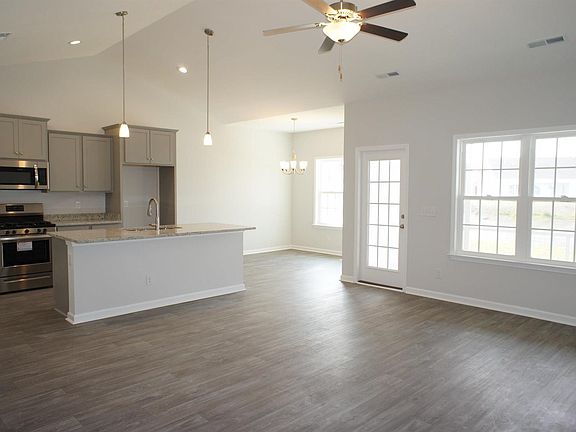 Beautiful Hatteras C floor plan in the new Ocean Palms community. This terrific open floor plan, 3 bedroom, 2 full bath home will have grey wood-look vinyl flooring everywhere. Stainless appliances, staggered-height grey painted Shaker-style cabinetry and a convenient granite kitchen island combine to give you the wow factor you're looking for, and abundant recessed lighting, pendants over the island, plus two large windows in the adjacent dining area flood the room with light. There's even a large walk-in pantry and an office! A French door at the back wall of the great room leads to the screened rear porch and the huge separate patio beyond. The spacious owner's suite features a long vanity with double sinks, an oversized walk-in shower, plenty of storage in the linen closet and a huge walk-in closet. Two additional bedrooms and a full bath are tucked off on their own hallway, for privacy. All of the homes in Ocean Palms come standard with the luxury of natural gas (tankless water heater, gas heat, and gas range). The two car garage is completely trimmed and painted. Ocean Palms is conveniently located near shopping, restaurants, schools and world class medical offices and hospitals, and only a short golf cart ride to Surfside Beach's gorgeous beach and the beautiful Atlantic Ocean. Other floor plans and inventory homes may be available, and CUSTOMIZATION OF FLOOR PLANS IS POSSIBLE!!! Community Pool and Cabana are now open! Photos are of a completed, similar home and may have different features.