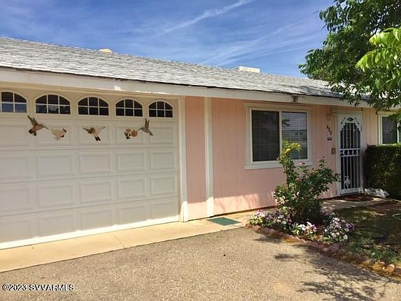 Great In-Town Location, Convenient to all amenities, Very nice red rock mountain views from front door, also views of surrounding mountains, Darling 1232 sq. ft. home, built in 1981, large lot (.27a), 14x20 single car garage, great 10x34 covered rear patio, Security doors, fully fenced private huge rear yard, RV parking ok, alley access if buyer wants to put in gate, asphalt driveway and parking area, landscaped, newer kitchen cabinets and countertops, pantry, natural gas stove, built in microwave, refrigerator, breakfast bar, natural gas water heater is 2019, new natural gas central air heater, nice laundry room, modern windows, screens, great room floor plan, 3 bedroom, 1 3/4 bath (both bathrooms have walk in showers only), ceiling fans in every room, Storage shed, zoned R2-4,