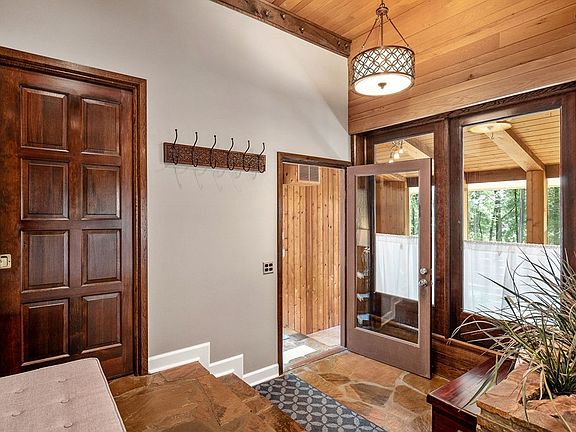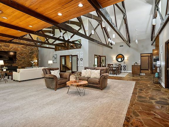 Unlike anything else on the market is this epitome of convenience with an architectural wow factor. A truly unique property nestled on a lightly wooded two acre lot on the ever popular Maple Ave. This stunning contemporary chalet-style home offers the perfect blend of modern luxury and natural beauty. As you step inside, you'll be greeted by intricate woodwork and flagstone floors that flow seamlessly throughout the main space. The abundance of windows flood the gigantic living area with natural light, all while offering picturesque views of the surrounding landscape. The dramatic details of this home are truly breathtaking. From the soaring ceilings and wooden beams to the ample windows and architectural details that catch the eye at every turn, this home offers almost 4400sqft of style and space for everyone in the family. A true entertainer's dream, the wide open floorplan lends itself to family gatherings and expansive dinner parties.