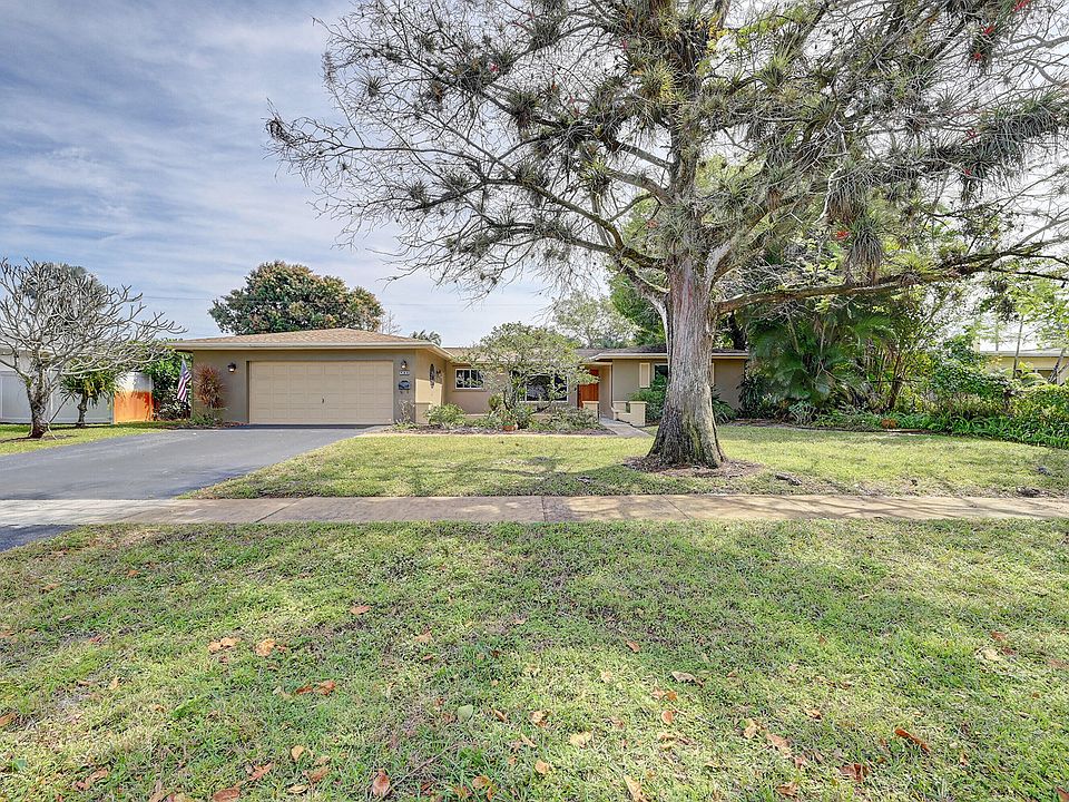 This charming single-family home offers a spacious living area of 2143 sqft.Located in Plantation Park neighborhood. This property is perfect for those seeking a comfortable and stylish living space.As you enter the home, you will be greeted by an inviting exterior entry with a patio area, perfect for enjoying the Florida weather. The dining area features parquet floor, with an elegant chandelier, creating a warm and welcoming atmosphere for entertaining guests. The family room is tiled and features a ceiling fan, providing a comfortable space for relaxation. The home also includes a dedicated office space/ bedroom with a brick wall, ceiling fan, pocket doors, full bath ideal for those who work from home.The kitchen has wood cabinets, granite counter tops,all appliances,breakfast bar with slide out cabinets and wine rack below . Living areas are tiled on a diagonal .The primary bedroom has laminate floors and a barn style door to the closet adding a touch of charm. The ensuite bathroom features a newer vanity .The additional two back bedrooms are spacious and feature ceiling fans and ample natural light and terrazo floors. The backyard offers a serene escape with a patio area and a well-maintained yard, for garden lovers.