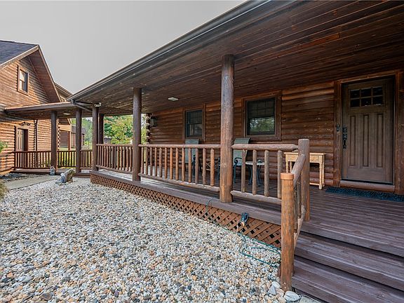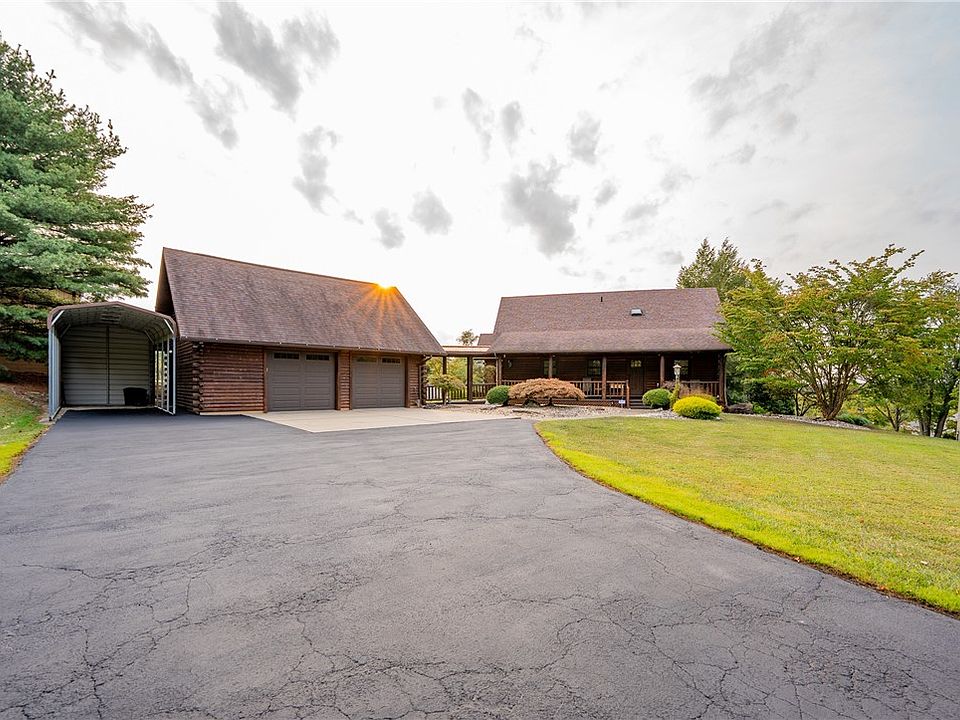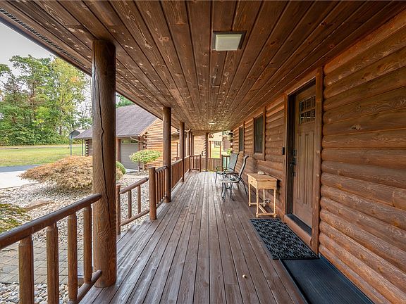Calling all garage enthusiasts—this exceptional, one-owner log home is a rare offering, set on virtually flat acres. The immaculate, turnkey interior showcases an open-concept design filled with natural light, gleaming hardwood floors, and a warm, inviting ambiance throughout. The expansive lower level provides outstanding potential for additional living space or generous storage. What truly distinguishes this property are the impressive additional garages, including one featuring a private apartment ideal for guests or a mother-in-law suite, along with an oversized detached garage and a separate workshop. Outdoors, a spacious deck overlooks your own in-ground pool, creating a setting for relaxation and entertaining. Whether accommodating a business, hobbies, or recreational vehicles, the possibilities are endless. Conveniently located near the turnpike and Route 70, this rare opportunity should not be missed.