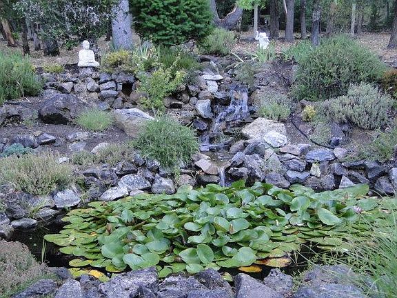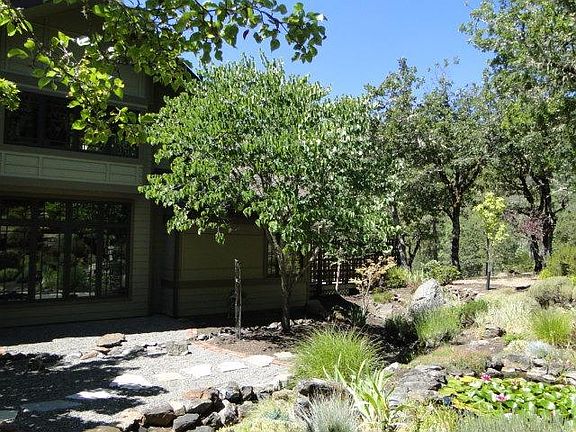 Exquisite home in secluded neighborhood, built by local, premier builder, John Magallon. Home design is inspired by a Frank Lloyd Wright plan which was voted best plan of the year by Better Homes and Garden. Three bedrooms, 3.5 bathrooms, bright and open home with lots of gorgeous windows allowing nature to spill in. Cherry wood flooring and custom built-ins. Auspiciously situated at the confluence of a seasonal and year-round creek. Asian influences in construction and garden design. Detached guest studio, large carport with workshop, and garden shed/art studio to take advantage of painterly light. Large kitchen garden steps away from wrap around balau wood decking. Rock from property stacked and terraced connecting buildings and garden. Privacy and serenity for the most discriminate of buyers.