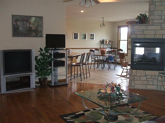 4 bedroom 3 bath 3 car garage all brick walkwout basement on 3.5 acres. Home features hardwood floors, tile, solid oak doors covered deck and patio, kitchen has double oven solid countertops breakfast nook area hearth room formal dining 2 fireplaces 2 living areas excercise room john deer room speaker system and wet bar. master bath has double vanities large walk in closet jetted tub walk in shower and makeup vanity. 40 x 60 workshop has large finished area that is heated and cooled bathroom and 14 foot sidewalls. lot has partial wooded area. this home is a must see.Ower/agent