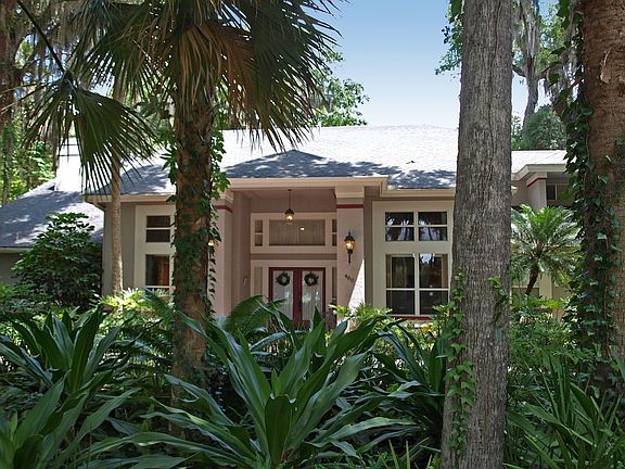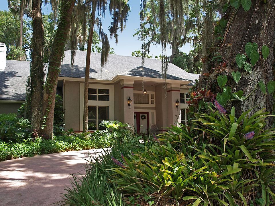 "Wow!" is what you'll say when you walk into this Stone Island Beauty! You're greeted by a wall of 20 foot windows overlooking the lush Florida landscape. Two travertine fireplaces that soar up to the 22 foot ceilings. Nothing is ordinary in this home including the private phone booth! Every room is spacious and filled with light and there's lots of room to roam with a great room, large den and loft for relaxing. The master bedroom is one of a kind--rivaling those you see in million dollar homes! 20 Foot curved floor to ceiling windows, fireplace and incredible ceilings with sitting area! Bright and cheery kitchen that's completely renovated with light cabinets, granite, stainless appliances and gorgeous wood beams--all open to the great room--perfect for entertaining! Upstairs you will find a spacious loft and 2 over sized bedrooms and an additional full bath. Relax by the heated pool which is the perfect tropical oasis. The 1/2 acre lot is lush and is Old Florida at it's best! Your front view is a beautiful park area and Lake Monroe--so peaceful. Plenty of parking with circle drive and side entry garage and a covered boat space next to the drive for those lazy days on the lake. Stone Island is a wonderful community with boat ramp, horse stables, tennis courts--bring your golf cart and sense of adventure. Most of all, wonderful neighbors come free of charge!
