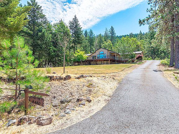 Welcome to 480 Surrey Drive. This stunning custom home is perched on a hill at the end of a tranquil road and offers a spacious floor plan with strategically placed windows that showcase breathtaking mountain views! The living room boasts vaulted ceilings and a gas fireplace, creating a cozy and inviting atmosphere. The recently remodeled kitchen features exquisite granite countertops and rich dark alder cabinets, providing ample storage and functionality. The dining room is perfectly situated with French doors that lead to the back patio, ideal for indoor-outdoor living. The expansive primary bedroom includes an en suite bathroom and a large walk-in closet. It also has direct access to an extensive deck, perfect for savoring beautiful summer sunrises and sunsets. Two additional bedrooms and a guest bathroom complete this home. Additional highlights include a paved driveway, mature landscaping, garden area, and a large shed. All this to enjoy in a private setting on an acre of land!
