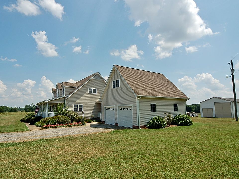 REDUCED! Beautiful 4 bed/4 bath home on 2.43 acres! Rocking chair front porch. Vaulted ceiling with skylights fills great room with natural light. Kitchen has double ovens, cooktop, island with breakfast bar, breakfast area. Den has vaulted ceiling. Sunroom opens onto the deck. Main level master bedroom with sitting room, walk in closet. Master bath has jetted tub, separate shower. Two upper level bedrooms have own baths, double closets. Deck. Garage with heated/cooled bonus room. Storage Buildings