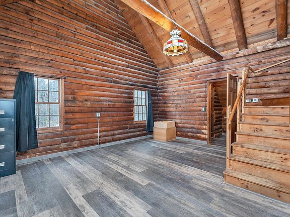Surrounded by 28 acres, this private little Cabin is the perfect getaway. If your looking for peace and quiet in your every day life, easily make this your full-time home. Inside the property does need some cosmetic updates but this home is a great foundation to add your personal touch. The Cabin has a metal roof, a newer forced hot air heating system and has been professionally insulated to make the property energy efficient. The main level offers an open living area with a cathedral ceiling. The kitchen dining area has a hearth to install a wood or pellet stove. A Second level has a loft area that can be used as a private bedroom. Step outside onto the porch and breathe in the fresh, crisp air or enjoy your morning coffee while admiring the breathtaking views of the surrounding wildlife. Take a leisurely hike through the woods and head to the back side of the property via old trails where the property abuts water. Whether you're looking to escape the hustle of life or connect with nature, this rustic cabin getaway is the perfect place to do just that.