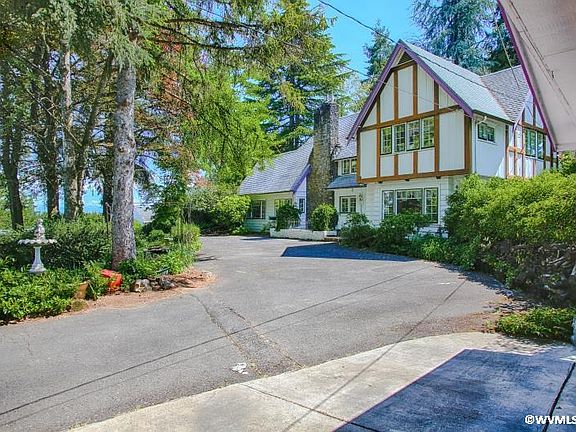Gorgeous English Tudor built in 1933 nestled on 2 tax lots, secluded by trees in heart of city. Views of Mt. Hood & Mt. Jefferson. Incredible quality craftsmanship in original entry w/handcrafted staircase leads to bedrms. LR, DR, Den, Kitchen, & FM, on first floor w/3 incredible, built-in fireplaces. Separate entrance to 1 bed, 1 bath apt currently a rental, could be Mother-in-Law suite or 5th bed. Entertainers dream property w/patio, BBcourt, in ground pool (heated). A must visit estate!