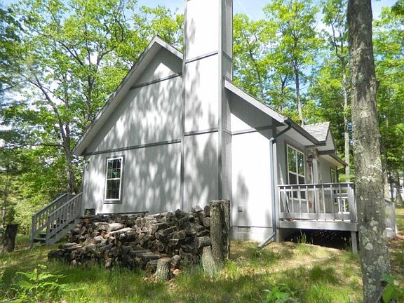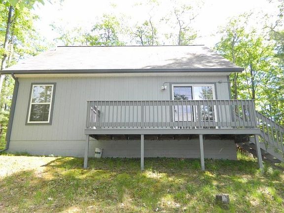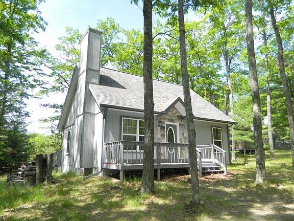 Cape Cod Secluded Home, just over 1 acre; nestled in wooded hill setting. Custom Built, wood and split stone exterior. Two main floor bedrooms and laundry area, second floor loft/bedroom. Open kitchen, dining room entering back deck overlooking hill top, living area with split stone wood burning fireplace. Near South End of Hubbard Lake near DNR Public Launch and White Pine National Golf Club.