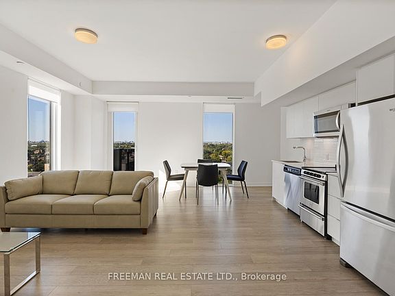 Bright and spacious 722 sq. ft. unit with an open, airy layout and large windows for abundant natural light. Modern kitchen with stainless steel appliances, ensuite laundry, and private balcony. Excellent amenities including gym and party room. Prime location near Wilson Subway, Hwy 401, Yorkdale Mall, shops, restaurants, and Rogers Stadium.
