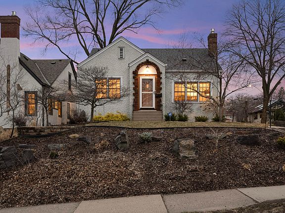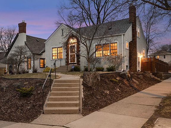 Stunning 1-1/2 story stucco and brick home is meticulously cared for! Just steps to Minnehaha Parkway, 2 blocks to Lake Nokomis, close to Minnehaha! This beautiful property boasts an interior and exterior that have been recently renovated throughout! Home features 4 bdrms, 2 baths. Beautiful living room with cozy gas-burning fireplace! Main floor has original, refinished hardwood floors. Modern, updated kitchen has plenty of storage, stainless steel appliances, convection oven. Upper lvl has a spacious bdrm, also used as a sunny office. Walls and ceilings refinished and painted, matching light fixtures, updated matching hardware. Both baths fully renovated with new tile, new vanity, new lighting. Upstairs bathroom features a soaking tub. Lower lvl bath has natural stonework in a glass walk-in shower. Exterior newly painted, new roof, gutters, downspouts. Detailed landscaping, maintenance-free deck, cedar fence. Walk to eateries, retail, schools. Luxurious details, traditional charm!