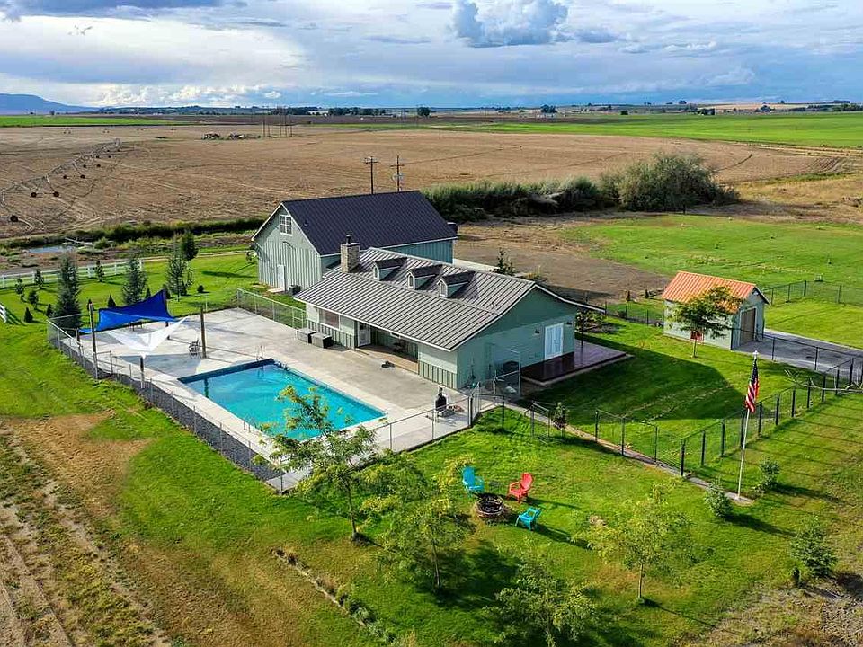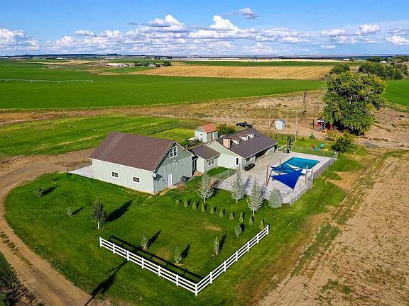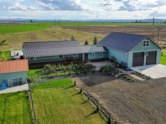 Welcome home to this beautiful, completely rebuilt farmhouse with 360° views on 5.10 gorgeous acres in North Pasco! Perfect country feel with the private location and wrap-around covered front porch for relaxing and taking in the views. This one-of-a-kind home boasts 4 bedrooms, 5 bathrooms, views from every window, in-law/guest suite, knotty alder doors, vaulted ceilings, formal dining room, maple hardwood floors, and tons of natural light! Expansive living room with cozy wood-burning fireplace opens to large country kitchen with breakfast bar, hickory cabinets, and walnut butcher block counter tops. Big master suite with French doors to deck and stylish barn door to luxurious master bath with dual vanities, tiled walk-in shower, soaking tub, and dream oversize walk-in closet with custom organization. Rec room/game room off garage with wet bar is perfect for entertaining and leads to second laundry room and 3/4 bath with HUGE walk-in tiled shower. Perfect opportunity for in-law/guest suite or even Air BnB accommodations with the upper-level bonus room suite--separate entrance, living area, large bedroom, half bath, and huge closet. Backyard entertaining is a breeze with the 40 x 20 fully-fenced pool area, extensive patio space, and shade sails! Perfect set-up for hobby farm--plenty of space for animals, outbuildings, garden shed separately fenced (garden, dog run, etc.), space for pastures, and historic 100-year old windmill! Oversize attached garage with two RV/Boat-bay doors, plenty of storage, and parking! Truly a must see property that has it all--views, privacy, space, and modern comfort!