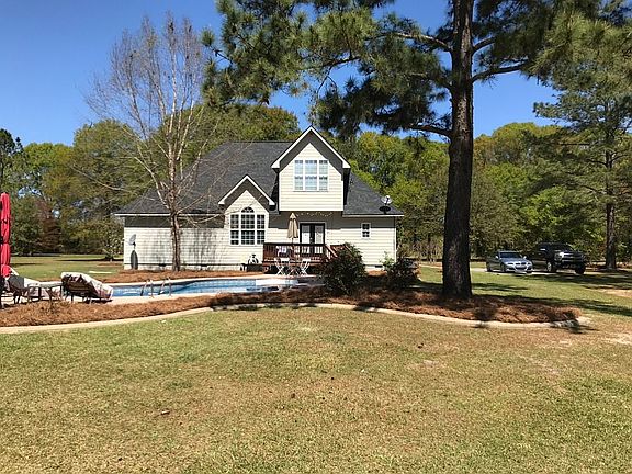 Two story home on 5 acres of land with master bedroom on the first floor and 2 bedrooms on the second floor along with a finished bonus room above the garage. Office area near laundry room with half bath. Custom cabinets in the kitchen, master bathroom, upstairs bathroom, entertainment center, and gas fireplace mantel. Laminate floors on 1st floor throughout with tile in the master bath and upstairs bath. Master bath has garden tub and glass enclosed shower, his and hers sinks, walk in closet, and separate powder room. 1st floor has full kitchen with custom island and granite counter tops. Living room is open to the kitchen and breakfast nook with separate dining room/2nd office area. Attached two car garage concrete parking for two cars outside, and a separate 24ft x 30ft shop/garage with a 12ft x 24ft covered area on the back of the shop with 100amp service fully wired and lighted with a built in work bench. On the outside there is room to park an RV and the shop has a 50amp plug to power RV. The back of the shop is lighted and has 110 volt outlets and lighting. Covered front porch and a deck in the back that connects to an 18ft x 24ft in-ground "Mountain Pond" style pool. Roof shingles were replaced in 2019 and both the house and shop have architectural shingles. The house has two full sized doors to access attic space on the second floor. The shop in the back has 34 solar panels that feed the house and were installed when Georgia Power allowed the full buy back of any excess power produced at 100% making the home environmentally friendly. Panels can be sold with or without the house. House sits on a quiet country road but only 4 1/2 miles from the town of Claxton, Ga and only 20 miles from the town of Statesboro Ga where Georgia Southern University and Ogeechee Technical College are located. Only 50 miles from Savannah, Ga.
