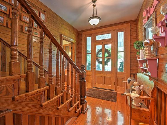 Are you looking for a little piece of history? This beautifully restored historic farmhouse was built in 1889 and has walls filled with stories that have yet to be told. The two-story home is situated on 5 acres with a small creek at the back of the property. You are drawn in immediately by the large wraparound porch and lovely garden area with a fish pond. As you enter the house, you are greeted with gorgeous restored hardwood flooring and a grand staircase. The original doors and walls have all been restored and look amazing. To the right is the living room with a large custom mantle fireplace. To the left is a bedroom/office with a brick fireplace. As you walk past the grand staircase, you will see the large master bedroom suite on the left. It also has a fireplace and large master bath with his and her sinks and a garden tub. Just past the family room (could also be a dining room) is the eat-in kitchen. The kitchen is equipped with a large pantry, many appliances and a breakfast nook. There is also a large laundry/mudroom and a second bath (needs to be completed - working on it slowly). A second staircase leads to the upstairs where there are four large bedrooms (two have fireplaces). Walk outside on the back deck and enjoy the beautiful views. There is a barn and storage building on the property as well. This home is the perfect place to have a small farm or turn into a bed and breakfast! Buyer/Buyer's Agent to verify all info.