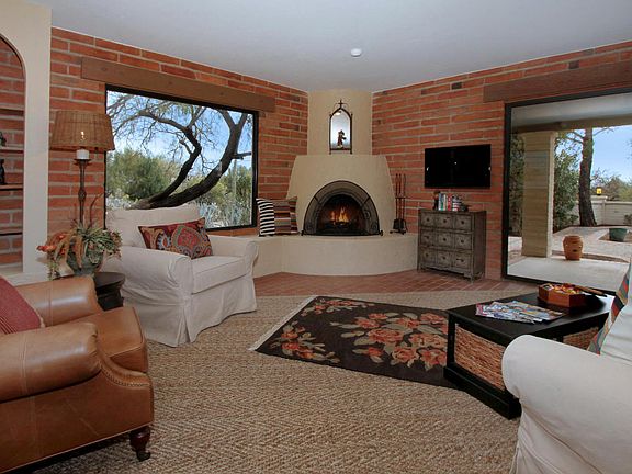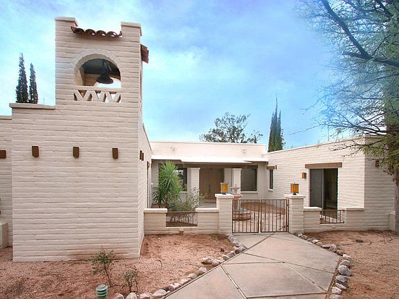 Prepare to be enchanted by this 1-of a kind hm. Wrap around golf course views w/Catalina Mtn backdrop greet you upon arriving. This mission-style hm features a fully functional bell tower, plank & beamed ceiling, interior brick walls, Mexican tile & brick floors, authentic lighting and so much more. Views abound from the oversized windows & glass doors accented by rough hewn beams. The family rm is set off by custom wood doors & offers the perfect space to relax & enjoy w/it's kiva fireplace & bonco seating as well as custom built-in bookcase/display unit. The lrg master suite is truly remarkable w/his & hers bathrooms, closets & laundry. The private guest suite focuses on views of lush vegetation, majestic Mtn views & golf greens. Lrg charming living spaces inside & out!!