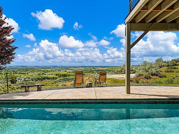This luxurious, custom-built home in the desirable Emmett foothills is a rare find & a special place to call home. Situated with a perfect view of the Emmett Valley, the location could not be any better! You will find 4 bedrooms in this home as well as a game room, wet bar & 3 fireplaces total. Grand entryway showcases the beautiful rustic design & high ceilings. You'll notice gorgeous wood accents, tile flooring, & a large floor plan. Spacious kitchen features a built-in range, oven, microwave, & granite countertops. Large master suite is a must see! It welcomes you in with a seating area and a private fireplace. Walking into the master bathroom you will find dual vanities, make up vanity, a soaking tub, walk-in shower, and a massive closet - giving you that constant luxurious feel. Serene backyard has breathtaking views, lap pool and large patio. Don't miss the opportunity to make it yours today!