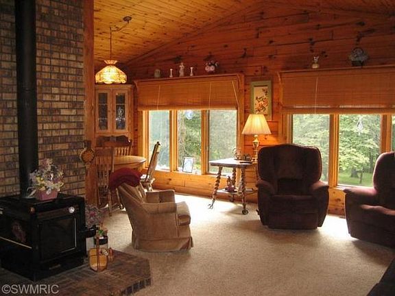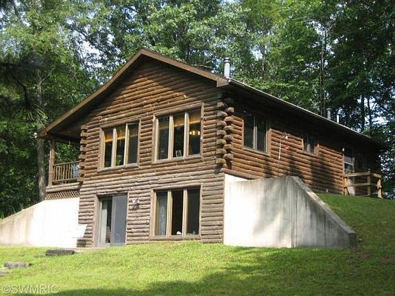 Nature Lover's PARADISE! This gorgeous log home is nestled on 43 acres of God's Country in Johnstown Township overlooking woods, wetlands, and your own private pond - Fruin Lake. Enjoy your morning coffee rocking on the 40 foot porch, while watching deer, turkeys and water fowl in the valley. This is a true log home with tongue and groove knotty pine walls and ceilings, newer roof, open floor plan with wood burner in the living room that adds warmth to the whole house. Master bedroom on main floor with 2 additional bedrooms and Family room on the walkout level affords space for everyone. 48x32 pole barn with 2 overhead doors, concrete floors, and electric is every man's dream come true! This home shows pride of ownership and must be seen. It is absolutely a retreat for serentiy, peace a