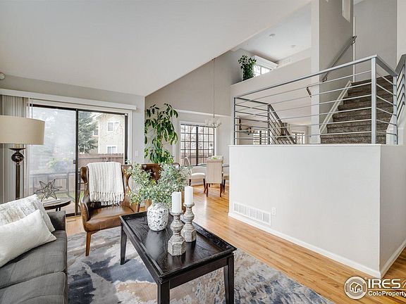 Discover the beauty of this low-maintenance patio home in sought after Kings Ridge. With an open floor plan and vaulted ceilings, this light-filled residence offers a warm, welcoming atmosphere. Featuring a gorgeous gourmet kitchen & hardwood floors on the main level. Two bedrooms, one on each level, provide privacy and flexibility, while the primary bedroom boasts a luxurious en-suite bath & walk-in closet. The open loft area can serve as an ideal home office space for remote work. Upgrades include high-efficiency plumbing, HVAC, and electrical systems, as well as a recirculation pump for instant hot water. Outside enjoy the delights of apple, peach, and apricot trees in your private fenced backyard that backs to the park and trails. The attached two-car garage is finished & insulated, ensuring convenience and protection. The HOA takes care of exterior maintenance, including the roof, snow removal, exterior paint, and landscaping (excluding the fenced backyard). Jump on Boulder's amazing bike path system and head to 29th St, Whole Foods, Pearl Street Mall, and the Boulder Reservoir, this home offers easy access to a range of amenities. Foothills Parkway provides quick routes to Denver and Longmont. Combining low-maintenance living, luxurious features, and a convenient location, this home presents an exceptional opportunity. Don't miss out on making it your own!