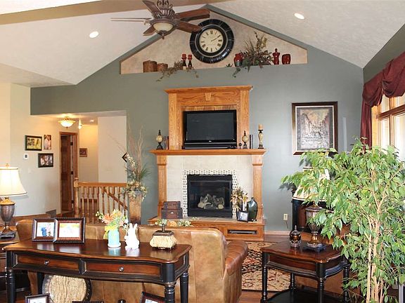 Ideal, custom one owner home with beautiful views on Deer Run! Great location, with 9.87 acres & extra garage/shop. Beautiful cathedral ceilings, wood floors & great detail through out. Awesome master suite with walk out to deck, large walk in closets in each bedroom. Basement is perfect for entertaining with large open area, wet bar and movie viewing area close by. Enjoy the outdoors on covered deck or patio below and gorgeous landscaping is seen around entire home. This is what you have been looking for!
