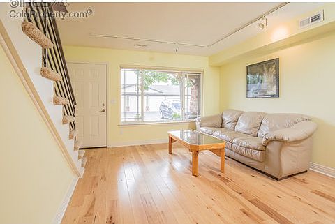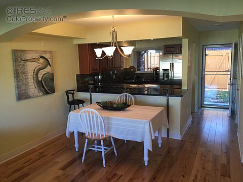 Plush new carpet & fresh paint upstairs! 1st floor fully remodeled in 2014 including stunning hickory floors, large pantry, dishwasher & fridge. A/C cools fast. Fenced in yard w/irrigation. Pet-friendly community. Light & sunny. Bedrooms w/balconies. Clubhouse/gym. Great location: hiking, biking, restaurants, rec center, RTD. Easy access to CU & Denver. 2 parking spots in front + separate storage area. Great landlord alternative. Unit B-15 closed for $422,000 in early summer.
