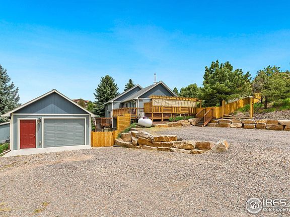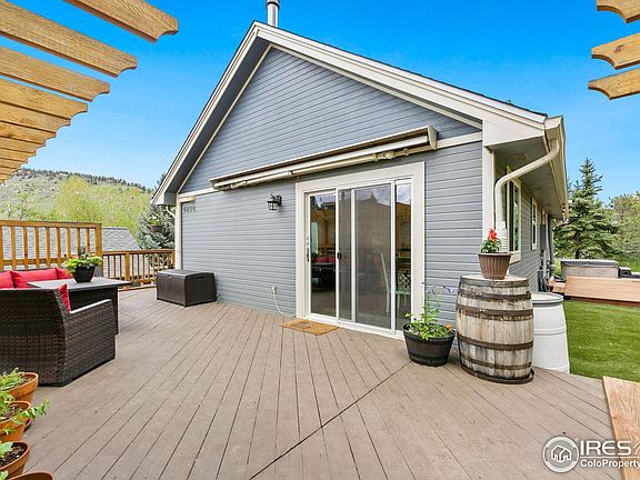 This foothills property is an outdoor living paradise with trees, views and short walk to the trails! From the entry a beautiful new oak and black metal staircase leads you up to the remodeled open kitchen with butcherblock countertops, stainless steel appliances and white cabinets. A new built in bench gives ample space for a dining table, a living area has vaulted ceilings, wood burning stove, new plantation shutters and new mini split heating/AC unit. So many more upgrades to list! Also on the main level you will find an updated powder room, the primary bedroom, an updated ensuite with outdoor access to the hot tub (included) just steps away and another bedroom. In addition, newer carpet, new window blinds, newer interior paint throughout the home. Downstairs you will find a large walkout family room, updated bathroom and two more bedrooms. Outside hosts a newer detached garage, enlarged driveway with new gravel, a fully fenced yard with two gates, new steps and gate to front entrance. This property has several outdoor elevations with multiple entertaining areas, a water feature, 40+ xeriscape plants, chicken coop, shed and garden. Don't miss out on this amazing property!