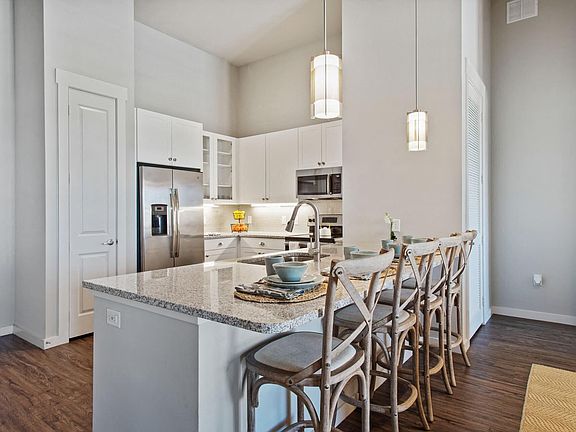 - Exterior features: 24-Hour Emergency Maintenance, Additional Onsite Storage, Availability 24 Hours, BBQ/Picnic Area, BBQs, Barbecue, Bicycle storage, Built-in Desk with Internet Accessibility*, Business Center, Ceran Ranges and Multi-Cycle Dishwashers, Complimentary Upright Tanning Bed, Conference Room, Courtyard, Custom Panel Interior Doors, Elegant Kitchen Lighting, European Cabinetry & Subway Tile Backsplash*, Expansive Nine-Foot Ceilings, Granite or Quartz Countertops, High Ceilings, High-speed Internet Ready, Housekeeping, Modern Vanity Lighting in Bathroom, On-Site Maintenance, On-Site Management, Outdoor Terraces*, Package Receiving, Pest Control, Pet Park, Pet Washing Station, Pet-Friendly Community, Poolside Luxury Loungers, Short Term Lease, Spanish Speaking Staff, Stainless Steel Appliances*, Street and Parking Garage Parking, Sundeck, Wi-Fi Connectivity in All Common Areas, Wood-Style Flooring*