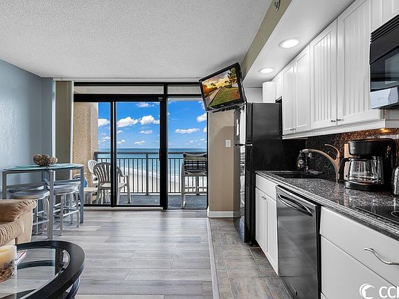 Beautiful updated Ocean Front Condo in the Sought after Beach Cove Resort. This Ocean front resort is located along the Barefoot Landing area of North Myrtle Beach SC area. Surrounded with all the Grand Strands Entertainment, Restaurants, and Shopping. The Beach Cove Resort is Centrally Located in the Grand Strand to Enjoy the North Myrtle Beach area, and you can go south to Myrtle Beach and beyond in just minutes. This unit was just recently updated with New Flooring and more features than other units. It is one of the only units with its on washer and dryer in the unit itself located hidden away in a closet. It also has Beautiful Black themed kitchen with that modern beachy feel through out . The Kitchen has LED lighting under the cabinetry to show beautiful lighting as well as the Hall way lighting with Dimmers .This unit has a custom built in Breakfast bar with Granite counter tops. The Diamon pattern Tile that matches Kitchen. This unit has custom made Black out curtains that convey. Bathroom shower doors are custom glass doors as part of the upfit of this unit. Very unique features. The Balcony also holds some of the most beautiful views along the Grand Strand. Rentals are Phenomenal. Come view this awesome resort today to get a feel of the ocean front living. ALL FEES including insurance, HOA, and Assesments for improvemnts are Paid up through OCT. 2023